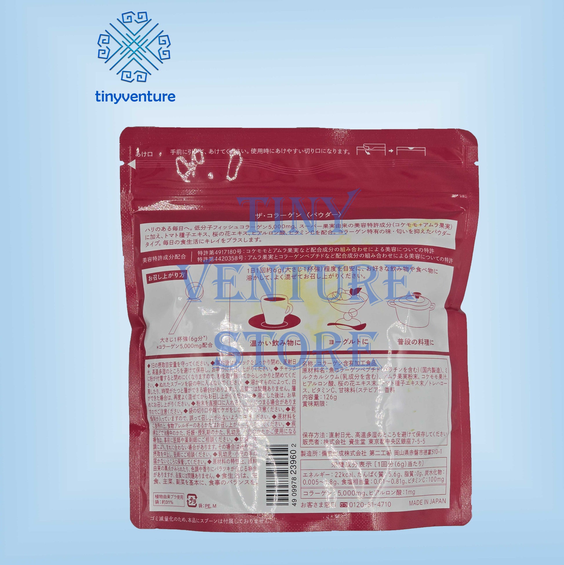 A powder that cuts the taste and odor peculiar to collagen. Adds beauty to your daily diet.